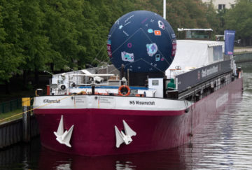 La embarcación del ministerio «MS Wissenschaft» presenta tradicionalmente exposiciones interactivas. Este año ilustra, por ejemplo, los modos de aprender del ser humano y de las máquinas y la influencia de la inteligencia artificial en el mundo del trabajo.