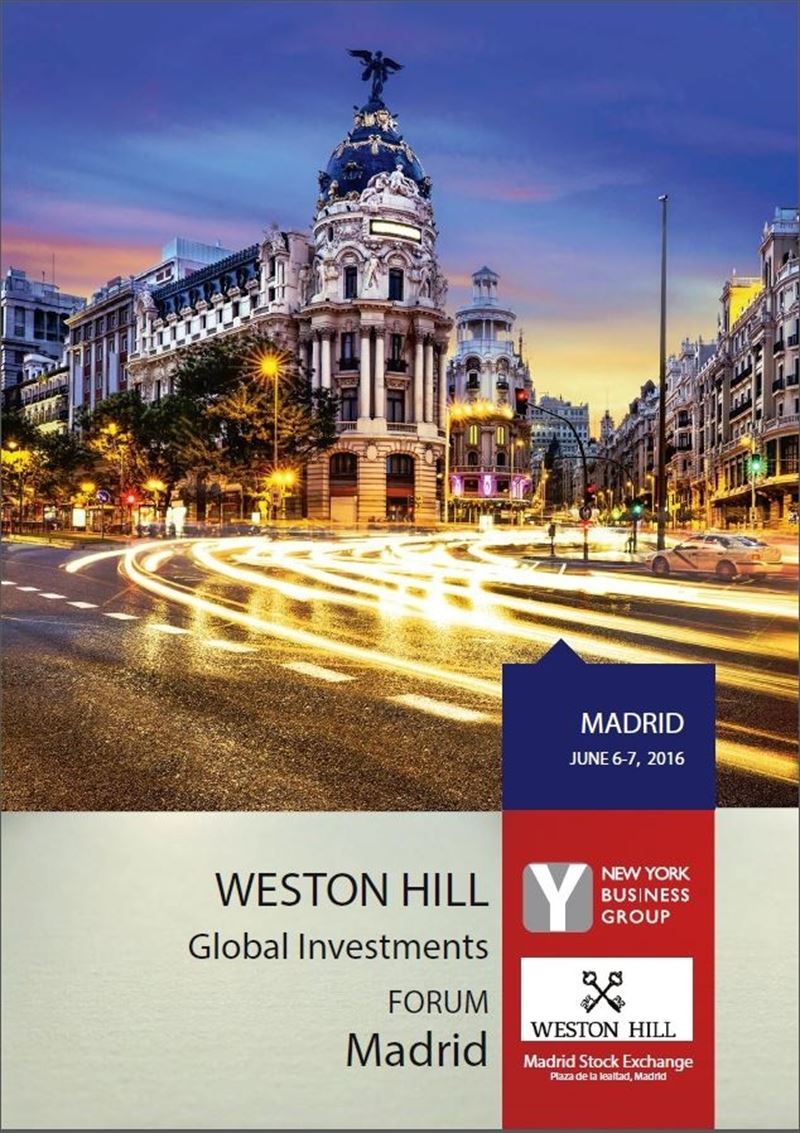 Para poner en común las estrategias de inversión internacionales y las oportunidades que ofrece España, Weston Hill ha organizado el Weston Hill Global Investments Forum, que se celebrará en la Bolsa de Madrid los días 6 y 7 de junio. Esta iniciativa reunirá a inversores de más de 15 países procedentes de Norteamérica, América Latina, Europa y Oriente Medio.