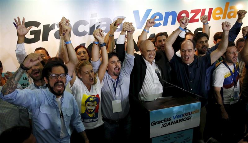 La Mesa de la Unidad Democrática (MUD), con el 65,27 por ciento de los apoyos, logra una mayoría cualificada que le permitirá impulsar un referéndum revocatorio contra el presidente de Venezuela, Nicolás Maduro. El Partido Socialista Unido de Venezuela (PSUV), por su parte, ha sumado el 32,93 por ciento de los votos.