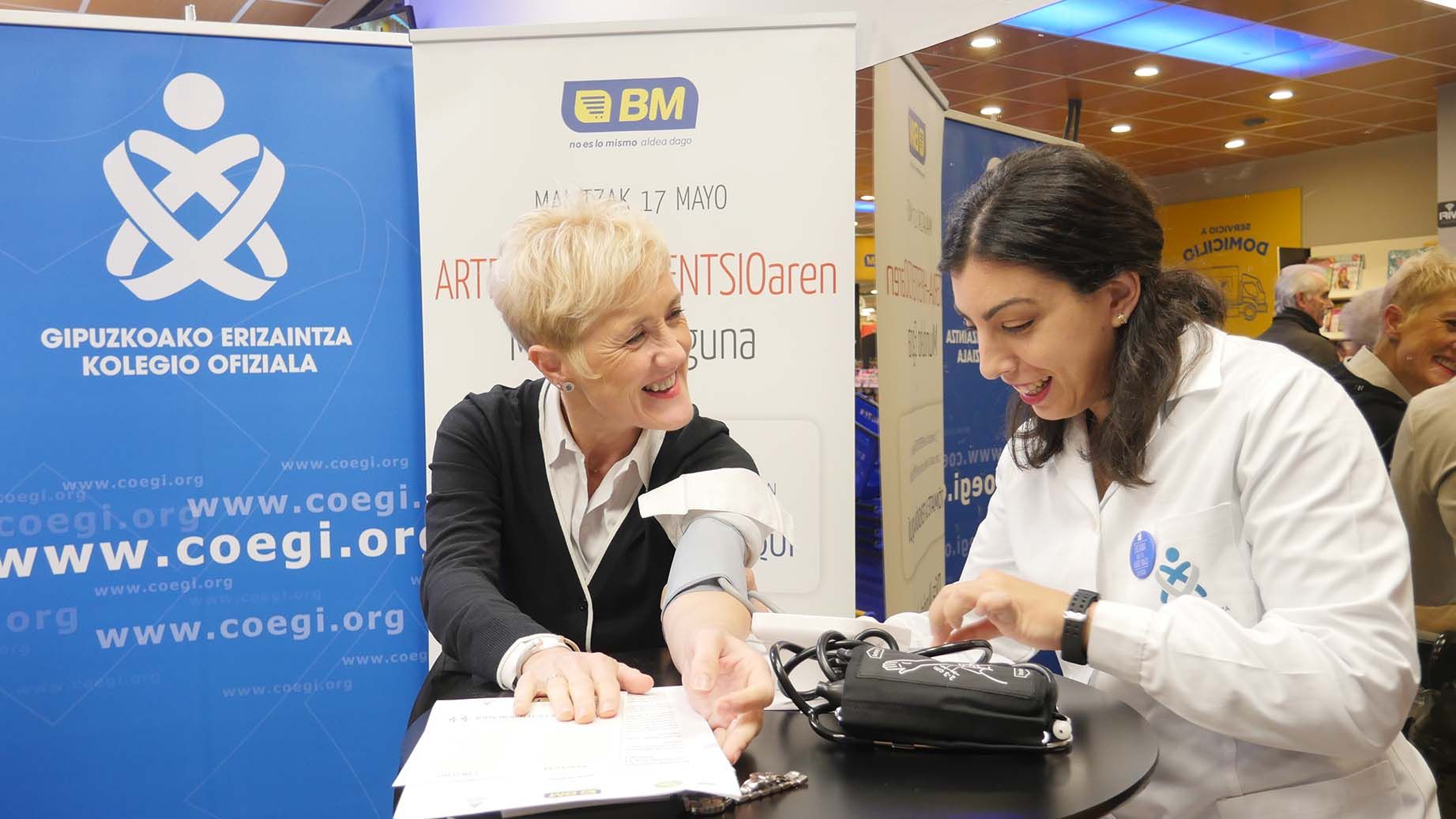 Hoy se celebra el Día Mundial de la Hipertensión Arterial. Por ese motivo el Colegio Oficial de Enfermería de Gipuzkoa (COEGI) ha instalado un punto de información y prevención en el interior del supermercado BM de la calle Ronda, 3 en Donostia, en el que los ciudadanos que lo deseen podrán tomarse la tensión arterial de forma gratuita a lo largo del día. Esta acción ha sido promovida por la cadena BM Supermercados con el objetivo de prevenir la hipertensión arterial y con ello concienciar de la importancia de cuidar la salud y llevar una alimentación saludable. La campaña ha contado con la participación de la presidenta del COEGI, Pilar Lecuona.