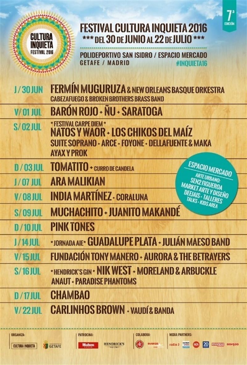 La séptima edición del festival Cultura Inquieta de Getafe comienza este jueves con el concierto del cantante vasco Fermín Muguruza, que el PP de Getafe pidió sin éxito que se cancelara, así como la actuación de Los Chikos del Maíz del próximo sábado 2 de julio.