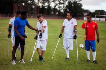 Todos los futbolistas tienen una pierna amputada excepto los arqueros, que, aunque tienen sus dos extremidades inferiores completas, les falta un brazo.