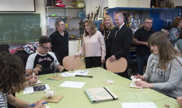 Tras la visita al Ayuntamiento, donde ha firmado en el Libro de Honor, y la reunión con la alcaldesa, la presidenta de la Junta ha recorrido también la Escuela de Artes y Oficios Palacio Ventura de la localidad.