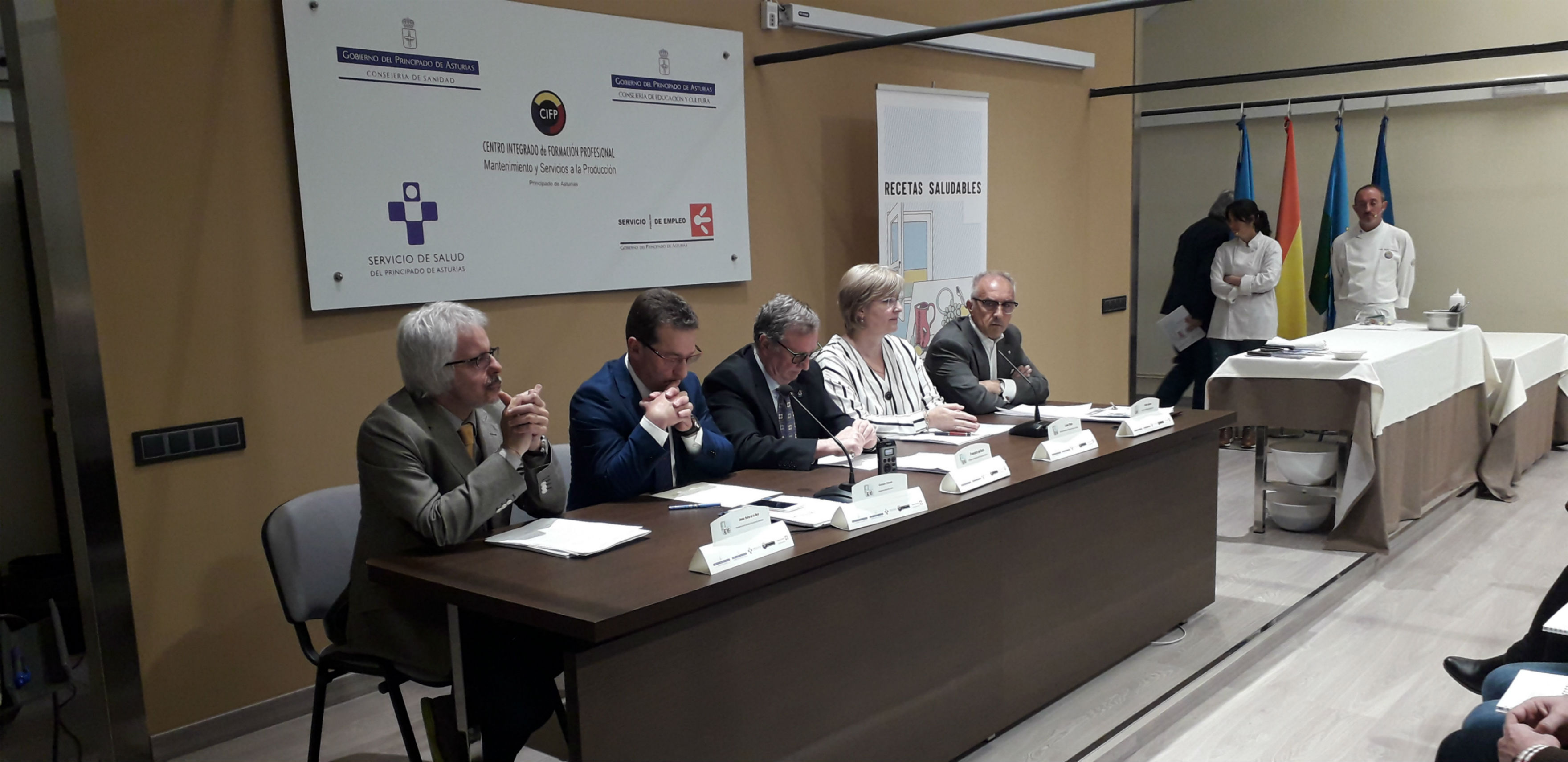 Los consejeros de Sanidad, Francisco del Busto, y de Educación, Genaro Alonso, han presentado hoy esta iniciativa en el Centro Integrado de Formación Profesional de Mantenimiento y Servicios a la Producción de Langreo, en un acto que ha incluido una exhibición de cocina a cargo de la comunidad docente de la Escuela de Hostelería de Langreo. A la presentación han asistido también el director del centro, Juan Carlos Quirós; la gerente del Servicio Público de Empleo (SEPEPA), Luisa Pérez; el gerente del área sanitaria VIII, Tácito Suárez, y el presidente de la Sociedad Asturiana de Cardiología, Jesús María de la Hera.
