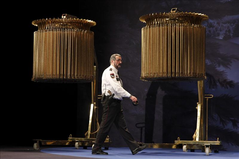 Madrid, 21 dic (EFE).- El «Gordo» duerme entre las bambalinas del Teatro Real, que se encuentra ya preparado y «precintado», a la espera de representar mañana su millonaria función, la del Sorteo de Navidad, la más esperada del año.
