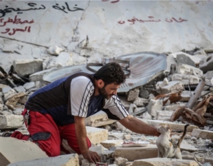 Este hombre de 44 años pertenece al grupo de las personas que busca supervivientes tras los ataques, pero él mismo se ha encomendado una misión especial: salvar gatos.