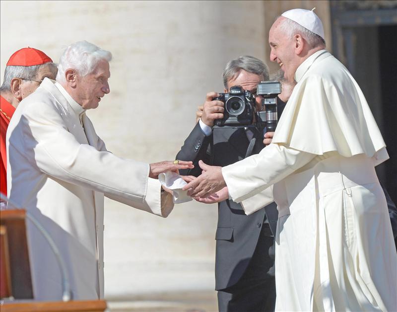 Francisco comenzó su discurso agradeciendo la presencia hoy en la Plaza de San Pedro del papa emérito Benedicto XVI.