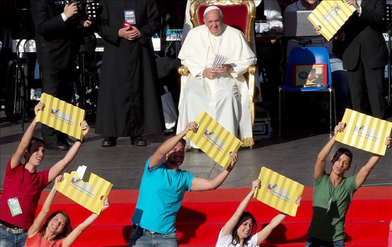El acto, que duró una hora, estuvo repleto de recomendaciones y consejos por parte de Bergoglio a estos jóvenes que reflexionan sobre cómo renovar la Iglesia.