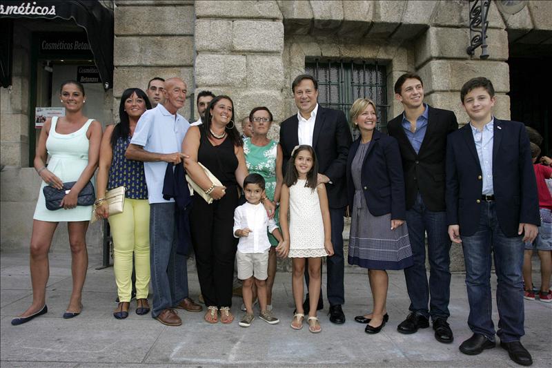 A las cuatro de la tarde llegó toda la comitiva panameña a las puertas del compostelano Pazo de Raxoi, y Varela, ataviado con una americana oscura, una camisa con el escudo bordado de su República y una amplia sonrisa, pisó la plaza del Obradoiro, acompañado de su esposa, la periodista Lorena Castillo, y dos de sus tres hijos, Adrián y Stephan.