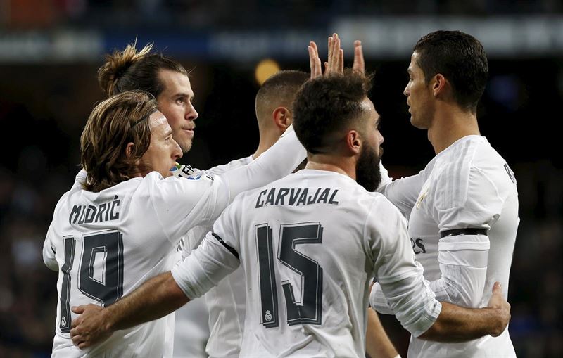 REAL MADRID: Navas; Carvajal, Varane, Ramos, Danilo; Modric, Kroos, Isco; James, Benzema y Cristiano.