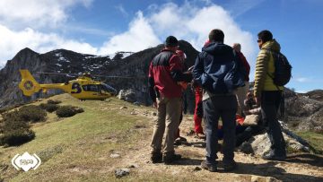 El Grupo de Rescate de Bomberos del Servicio de Emergencias del Principado de Asturias (SEPA), a bordo del helicóptero medicalizado del organismo autónomo, ha trasladado al Hospital de Arriondas a una mujer que resultó herida en una pierna cuando se encontraba en el mirador de Entrelagos, en Cangas de Onís.