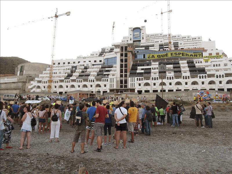 La anulación de la licencia municipal concedida a la promotora Azata del Sol para la construcción del edificio de 20 plantas en terrenos del parque natural de Cabo de Gata Níjar, declarados entre otros zona LIC o reserva de la Biosfera, se produjo después de que el mismo juez ordenase el 21 de febrero de 2006 la suspensión cautelar de las obras del hotel cuando éste estaba ejecutado en un 94,41 por ciento.