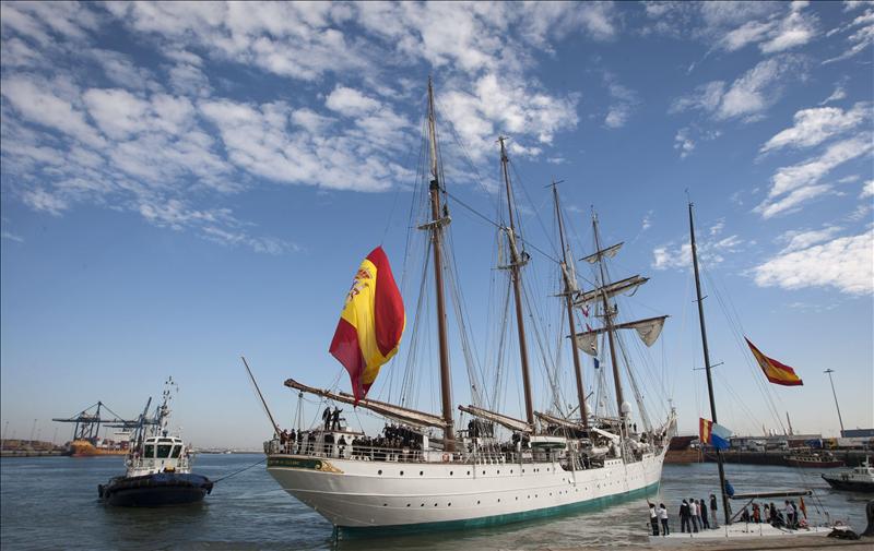 El buque ha zarpado hoy del muelle de Cádiz teniendo como primera escala Ceuta, donde recalará por tercera vez en su historia, en el año en que se conmemora el VI Centenario de la llegada de Don Juan I de Portugal a la ciudad.