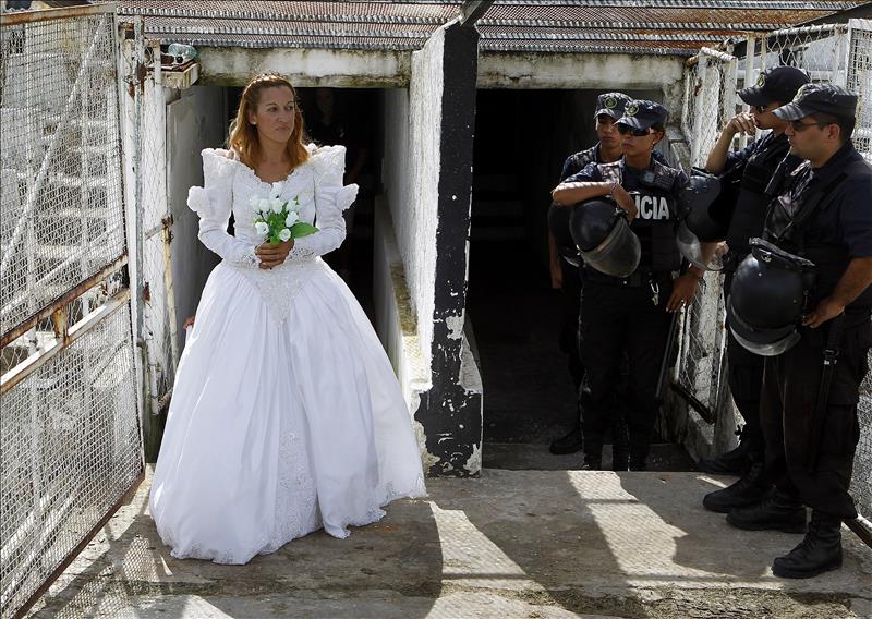 También estaba presenta la policía que daba seguridad al encuentro, algunos familiares y amigos, el pastor que ofició la ceremonia y el novio, que aguardaba en el centro del campo.