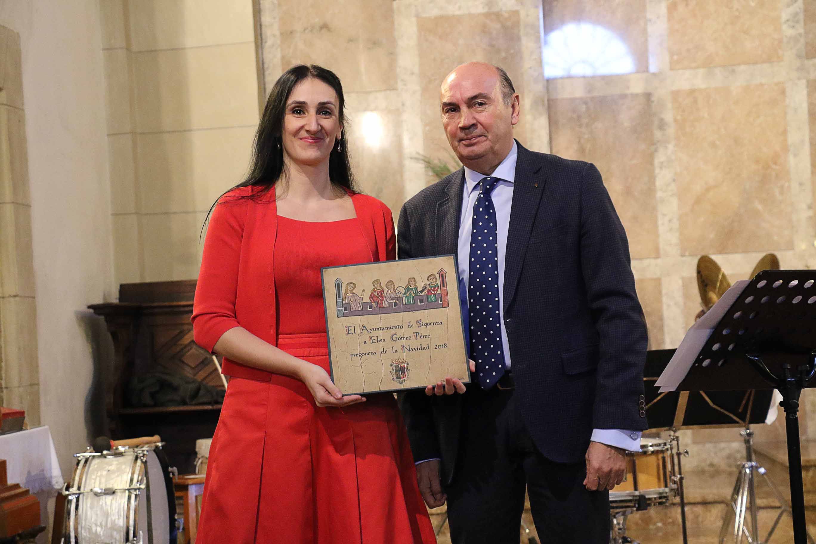 José Manuel Latre le hizo entrega de un detalle como pregonera de la Navidad en 2018. Y después del concierto de la banda, sobresaliente y emotivo, en el que no faltaron villancicos tradicionales como La canción del tamborilero, ni por supuesto, la Ronda de Navidad seguntina, igualmente el Ayuntamiento le hizo entrega de un ramo de flores. La concejala de Cultura, Sonsoles Arcones, igualmente presente en el concierto, señaló que, “no hay una sola actuación en la trayectoria de la Banda de Música que no supere a todas las anteriores. Estamos muy orgullosos de ellos, y por supuesto, de Elisa”.