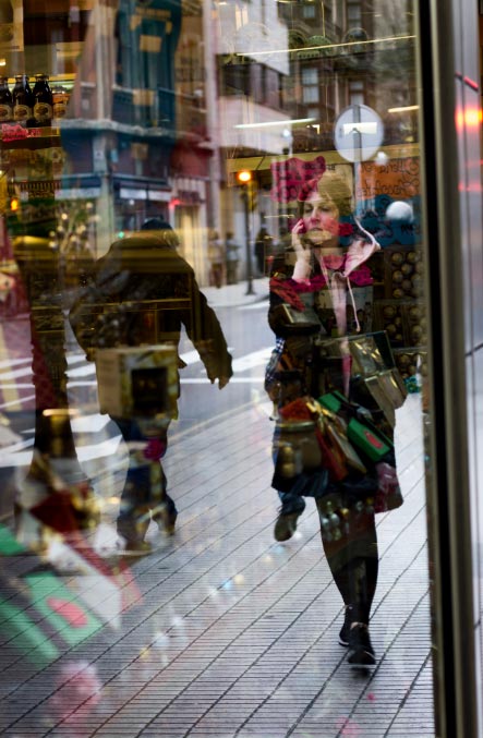 Las principales influencias de este trabajo fueron Eugène Atget, con sus escaparates parisinos, pasando por las distorsiones de André Kertész.