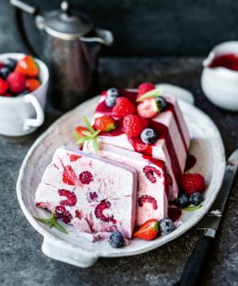 Por último, un buen grill demanda también un postre. Lo ideal para el verano es un parfait. Mezclar para ello mascarpone, yema de huevo, azúcar impalpable y limón. Añadir nata y frutos rojos a elección y enfriar toda la noche en un molde cuadrado. «Cortar en rodajas antes de servir y recubrir con frutos rojos frescos y una salsa de frutos rojos procesados», recomienda Weber.