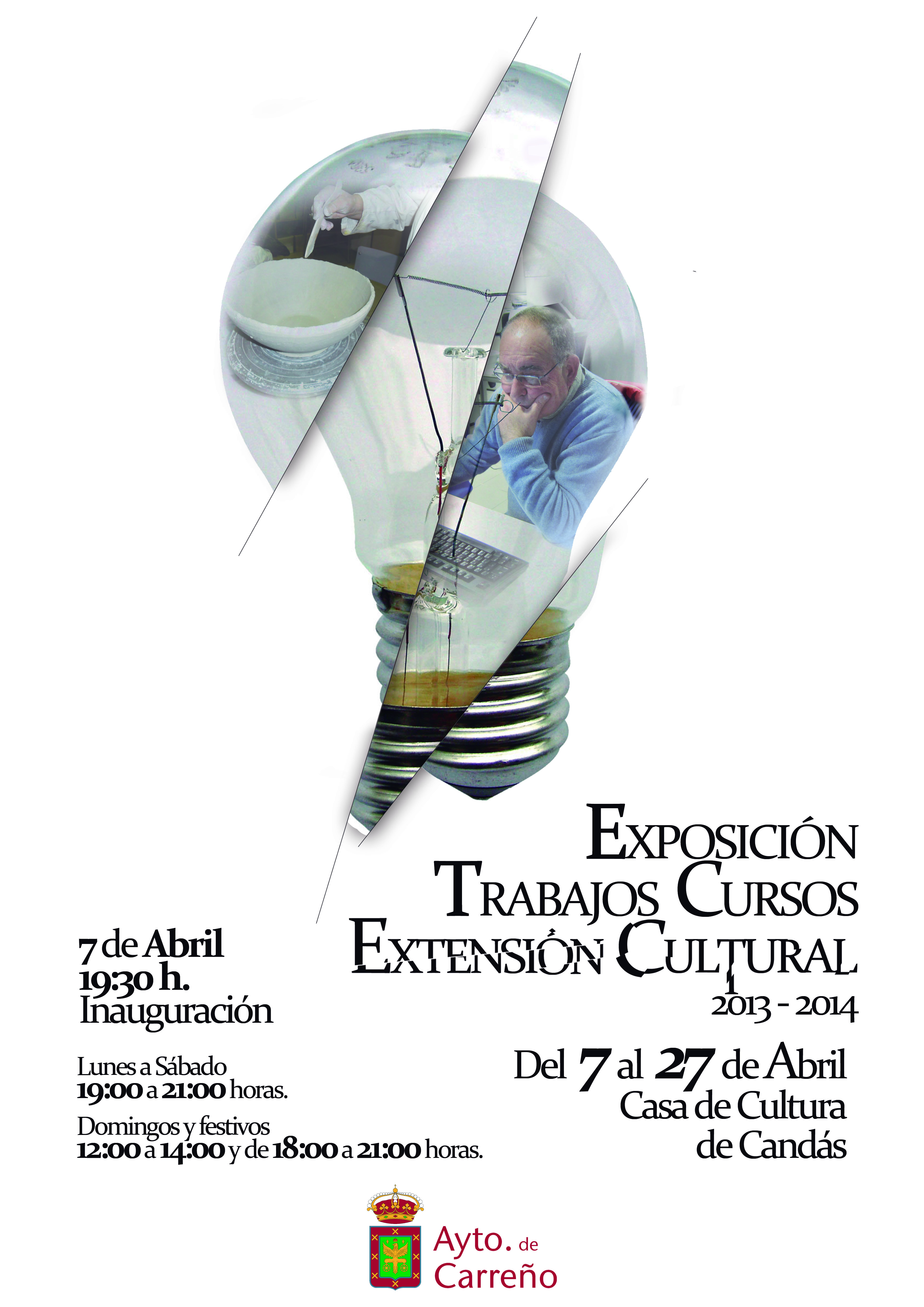 La Casa de Cultura de Candás albergará desde el 7 al 27 de Abril la tradicional exposición de trabajos realizados en los Cursos de Extensión Cultural organizados por el Ayuntamiento de Carreño. La inauguración de la exposición y la entrega de diplomas de asistencia a las personas participantes tendrán lugar el próximo lunes, día 7 de Abril a las 19:30 horas.
