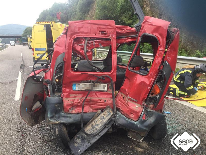 La víctima tuvo que ser excarcelada del interior del vehículo por efectivos de Bomberos del Servicio de Emergencias del Principado de Asturias (SEPA), con base en el parque de Valdés. La mujer que viajaba en la furgoneta fue evacuada, inmovilizada con collarín, con la tabla de rescate. Para su excarcelación los bomberos tuvieron que cortar las puertas del lateral del copiloto.