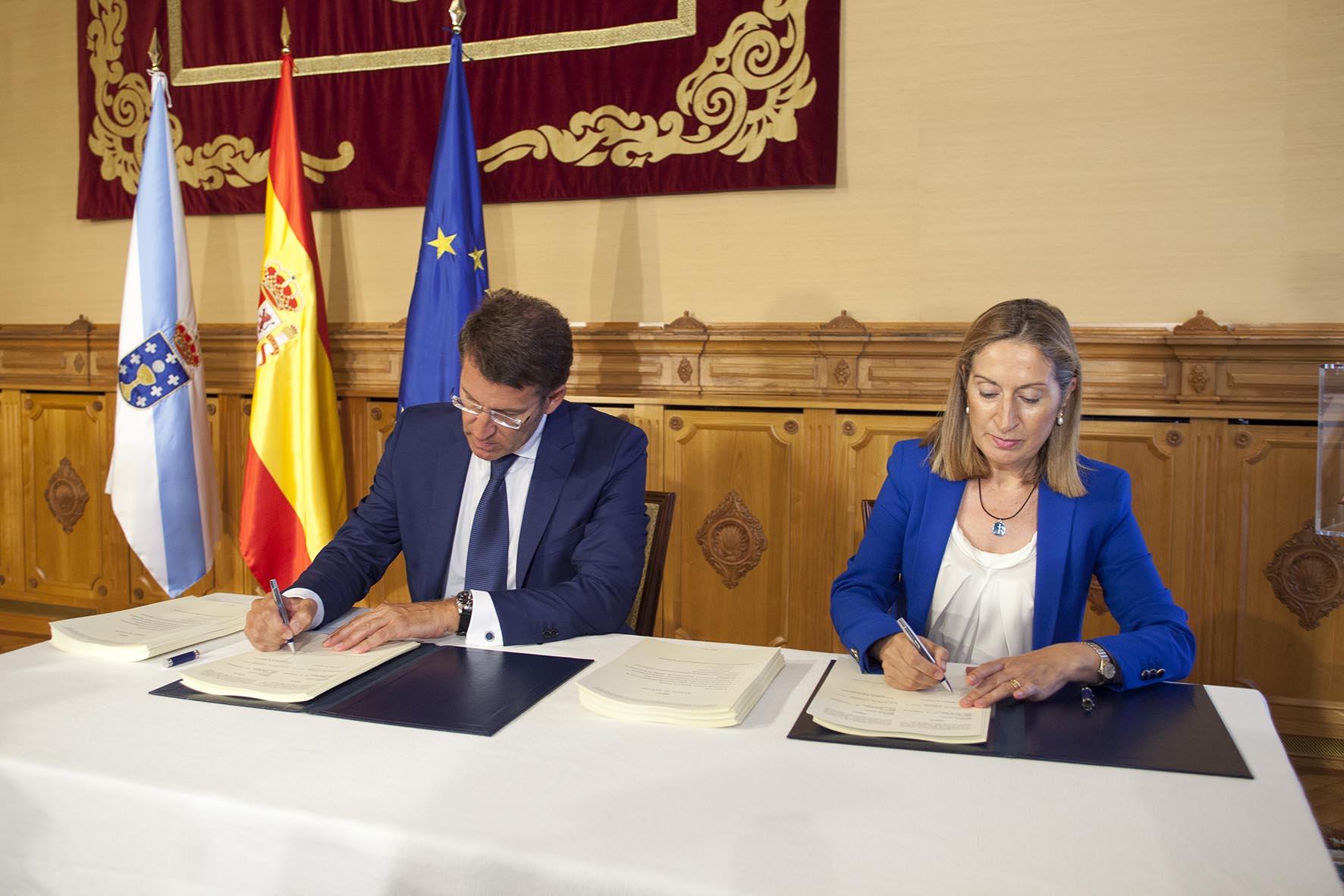 O presidente da Xunta firmou hoxe este convenio coa ministra de Fomento para poñer en marcha na Comunidade un plan que xunto con outras iniciativas do Ministerio suman 128,3 millóns de euros en materia de vivenda, destinados a Galicia no período 2013-2016.