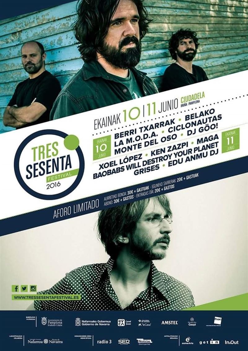 La quinta edición del festival Tres Sesenta arrancará este viernes, 10 de junio, en la Ciudadela de Pamplona, que acogerá conciertos de, entre otros grupos, Berri Txarrak, Xoel López, La Moda, Ken Zazpi, Belako, o Ciclonautas. El cartel está integrado por diez grupos y artistas del panorama indie y rock, tanto nacional como local.