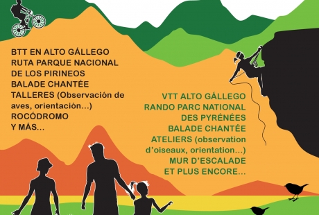 Las dos actividades principales de la primera Fiesta de la Montaña Transfronteriza serán BTT en Alto Gallego y el senderismo en el Parque nacional de los Pirineos. Además, durante toda la jornada se realizarán otras actividades complementarias como talleres (identificación de aves con SEO/BirdLife, …), balade chantée, rocódromo, presencia de los agentes del parque nacional…