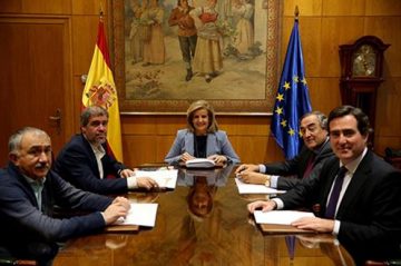 La ministra de Empleo y Seguridad Social, Fátima Báñez, los secretarios generales de CCOO, Unai Sordo, y de UGT, José Álvarez, y los presidentes de CEPYME, Antonio Garamendi, y de CEOE, Juan Rosell, han mantenido un encuentro para evaluar los avances en la agenda del Diálogo Social trazada el pasado 19 de septiembre y adoptar nuevos acuerdos en materia de Salario Mínimo Interprofesional (SMI).