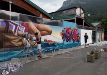 Los grafitis se han dibujado sobre la pared frontal del recinto ferial de la localidad y los han realizado los artistas Bastián Prendes, Raquel Díaz Requejo, Jorge Pérez del Valle y Marta Lorenzana Gámez.