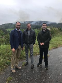 Ignacio Blanco, candidato de VOX Asturias a la presidencia del Principado, visitó esta misma mañana junto con Rafael Alejandro Sierra –candidato de VOX Pravia- y Borja Escudero –coordinador de VOX Salas- las zonas afectadas por el incendio que ayer se produjo en la Sierra de Sollera, en los municipios de Salas, Candamo y Grado, y que también afectó por el humo y fuerte viento a otros municipios asturianos.