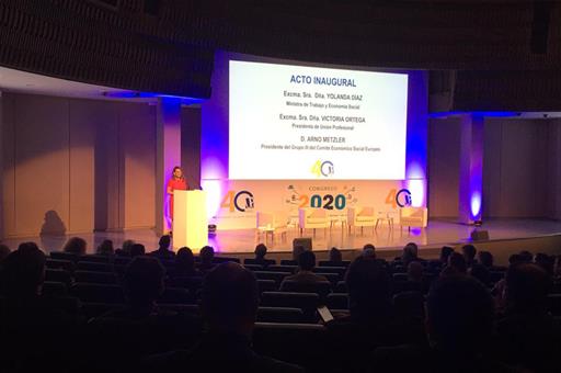 La titular de Trabajo ha realizado estas declaraciones en la inauguración del II Congreso de Profesiones organizado por la Unión Profesional que agrupa a las profesiones colegiadas españolas. En este acto, la ministra Díaz ha dado la enhorabuena a la Unión Profesional «y a su millón trescientas mil colegiadas y colegiados» por la celebración del 40 aniversario