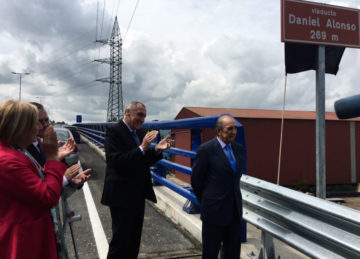 La pasarela de acceso al PEPA llevará el nombre de Daniel Alonso en reconocimiento a una trayectoria empresarial caracterizada por su labor de impulso y modernización de la industria asturiana y su apuesta por la investigación, la innovación, la cualificación del trabajo, la internacionalización comercial y la protección medioambiental.