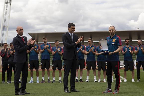 Iniesta recibió la condecoración de manos del nuevo presidente del Gobierno español, Pedró Sánchez.
