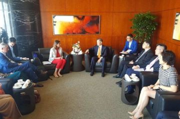 Antes de participar en la sesión, Maroto mantuvo una reunión privada con el presidente del Bank of Shanghai, Yu Jin.