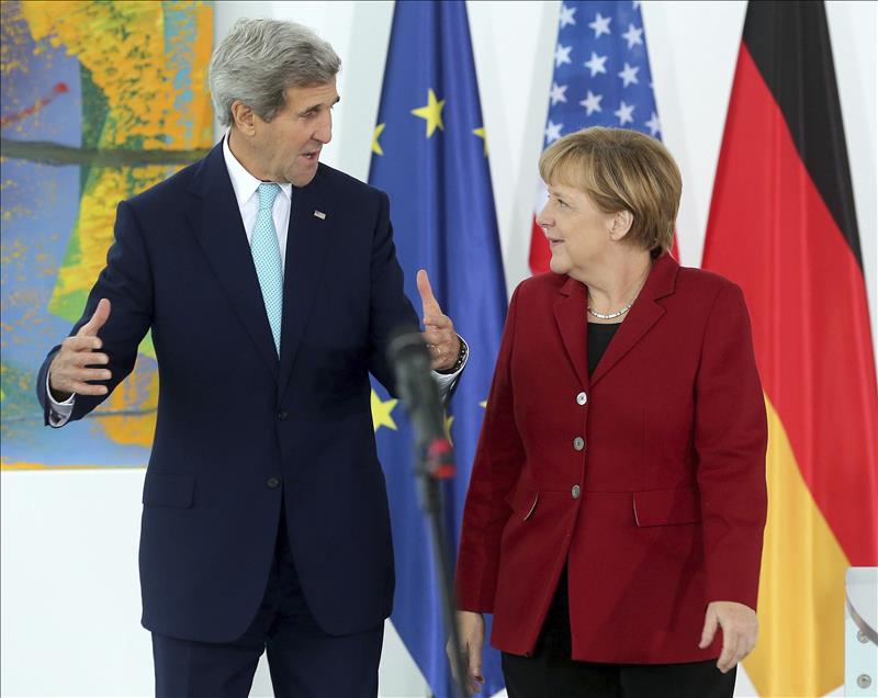 Kerry mostró su respeto ante el trabajo que realiza Merkel para convertir a Alemania en un «líder global» y puso como ejemplos su contribución frente al ébola, tanto financiera como con personal, y sus esfuerzos diplomáticos para encauzar la crisis ucraniana.