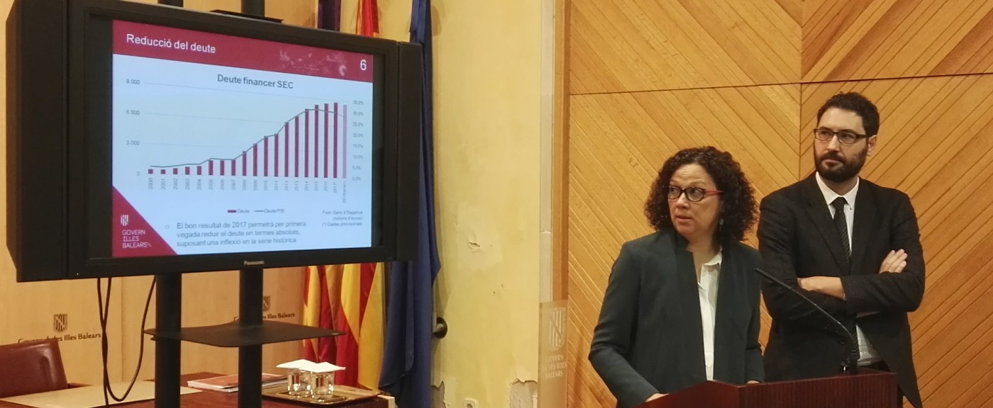 Para Cladera “lo más importante es constatar que se va cumpliendo todo aquello que hemos ido explicando en relación a la estabilización de la deuda, el paso previo a la bajada de este lastre que arrastramos en Baleares”. En este sentido la titular de Hacienda y Administraciones Públicas ha recordado los dos grandes rasgos que condicionarán la deuda de Baleares en 2018: “este año será el primer año que podremos bajar la deuda en términos absolutos, y nuestras previsiones nos sitúan a finales de año en los 8.600 millones de euros y un 27,8€ PIB; en 2018 la bajada de la deuda todavía será más acusada”.