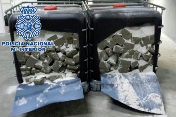 Los agentes frustraron la operación de carga y hallaron en el interior de dos depósitos, mezclados entre arena, un total de 1.200 paquetes recubiertos de precinto plástico. Cada paquete contenía otros cinco paquetes más pequeños con el dibujo de un cogollo de marihuana y la inscripción ‘kritikal’. El peso de la sustancia intervenida asciende a 640 kilogramos. El estupefaciente intervenido tenía como destino Dinamarca, país de procedencia de los dos arrestados.