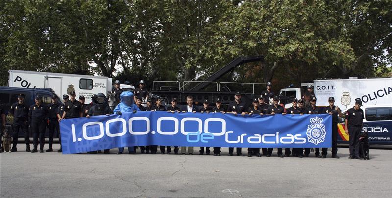 Representantes de todas las unidades policiales, -como el GEO, el TEDAX-NRBQ, GOIT, la Policía Científica y su Laboratorio de Actuaciones Especiales, la UIP, especialidades de Extranjería y Fronteras, agentes GAC y la UPR-, han posado después con una pancarta en la que se leía «1.000.000 millón de gracias».