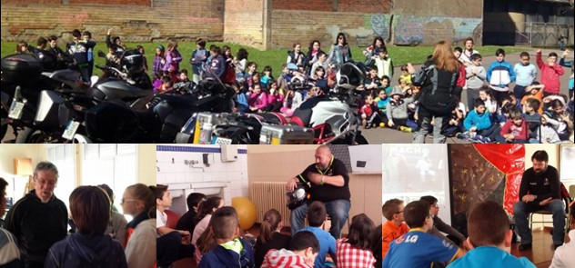 Esta semana fue el Colegio Cervantes de Gijón, que se ha implicado de una forma digna de destacar, en hacer llegar a sus alumnos esta asignatura de la mano de los moteros y a través del viaje de la que suscribe, escuchando atentamente todo lo acontecido durante los dos meses que duro la aventura de ir a la India en moto y formando posteriormente grupos de trabajo para aprender de primera mano cosas tan básicas como la equipación adecuada para circular no solo en moto, sino en bicicleta.