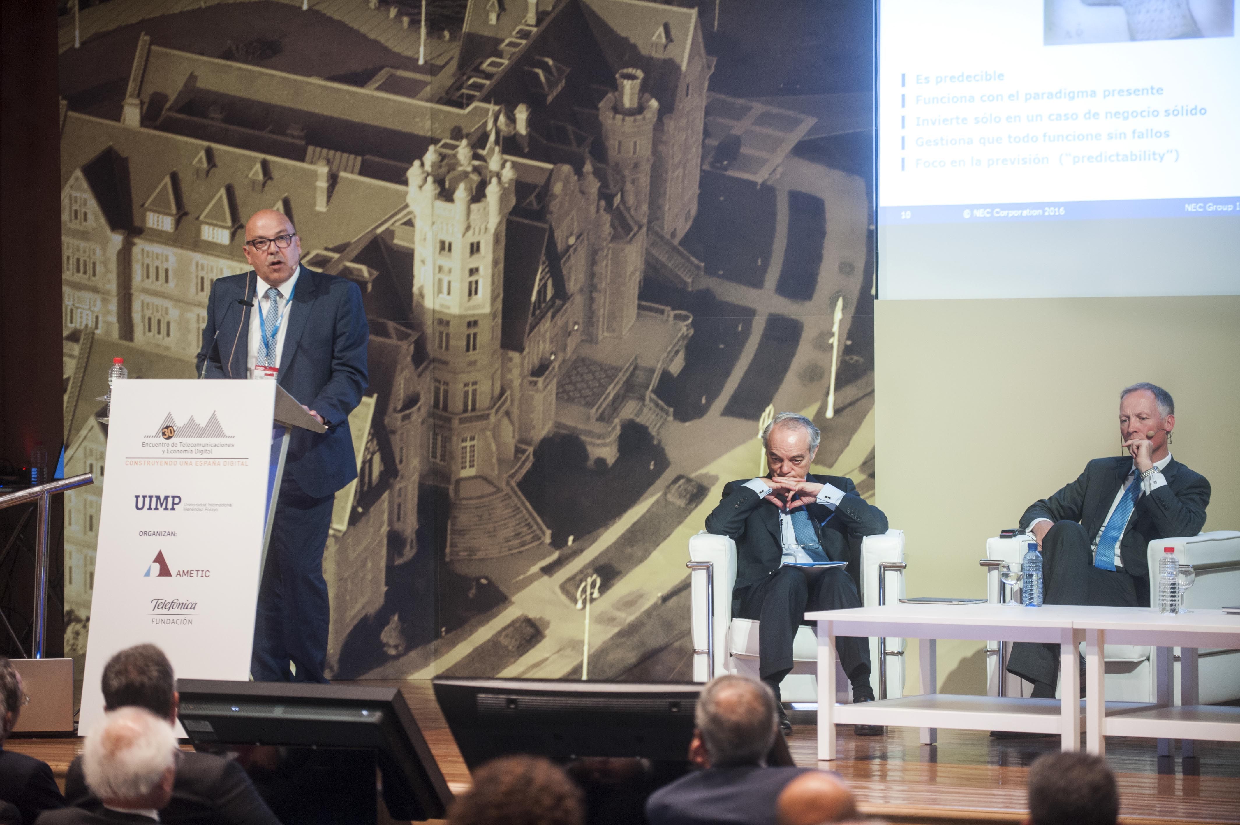 En la primera jornada del 30º Encuentro de Telecomunicaciones y Economía Digital, organizado por Ametic y la fundación Telefónica, que se viene celebrando esta semana en Santander, ha tenido lugar la Presentación de Jaime Serrano, Presidente de NEC Ibérica, en la que ha abordado las claves y los retos a los que se enfrenta España con respecto a la Transformación Digital, y ha presentado los principales ejes de la visión de NEC.