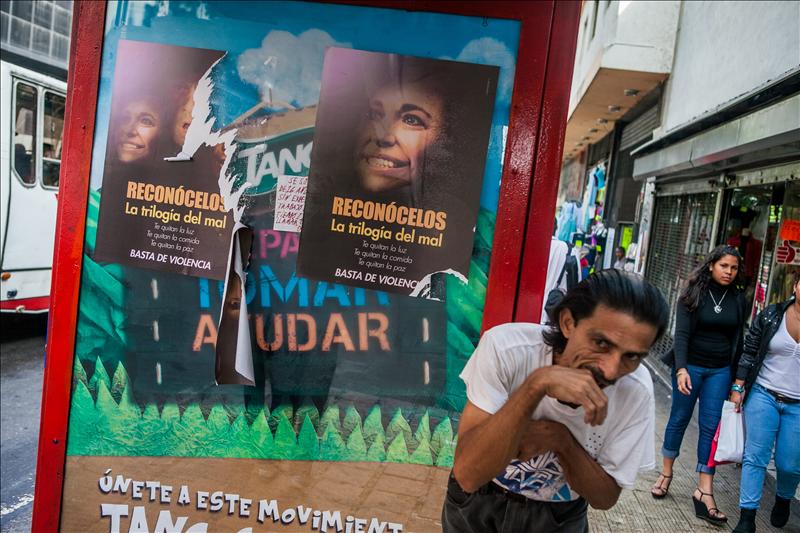 Esta semana aparecieron en la capital venezolana unos carteles en los que se pueden ver los rostros de los tres difuminados parcialmente sobre un fondo negro.