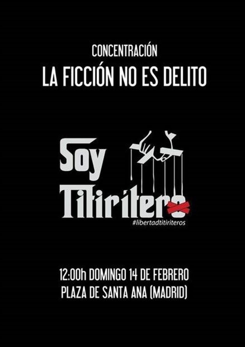 La concentración comenzará a las 12 horas en la plaza de Santa Ana. El cartel imita el de la película ‘El Padrino’. El lema es ‘Soy titiritero. La ficción no es delito’.