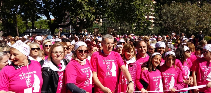 Unas 1.300 personas han participado esta mañana en la V Marcha por la Salud, organizada por la Asociación de Mujeres Aragonesas de Cancer Genital y de Mama (Amac-Gema). Entre los asistentes estaban el consejero de Sanidad, Sebastián Celaya, y el director general de Derechos y Garantías, Pablo Martínez.