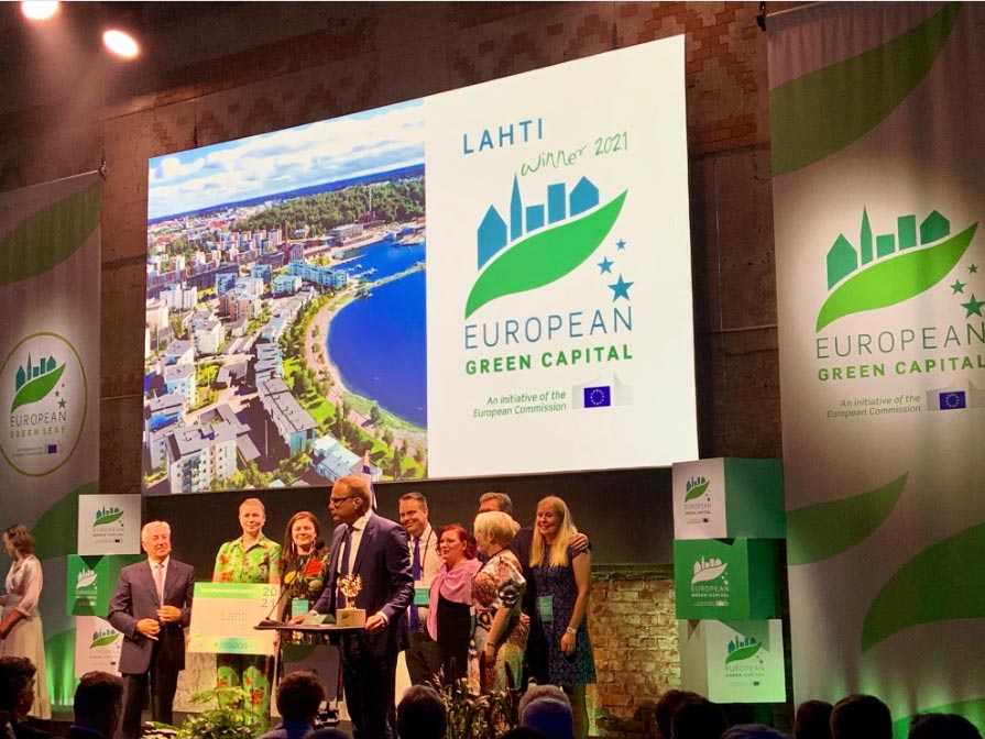 Ha sido el comisario europeo de Medio Ambiente, Asuntos Marítimos y Pesca, Karmenu Vella, quien ha desvelado el nombre de la ciudad galardonada en una gala celebrada en el Instituto de Arquitectura de Oslo, ciudad europea anfitriona de la ceremonia. El alcalde de Lahti, Jyrki Myllyvirta, ha sido el encargado de recibir el galardón.