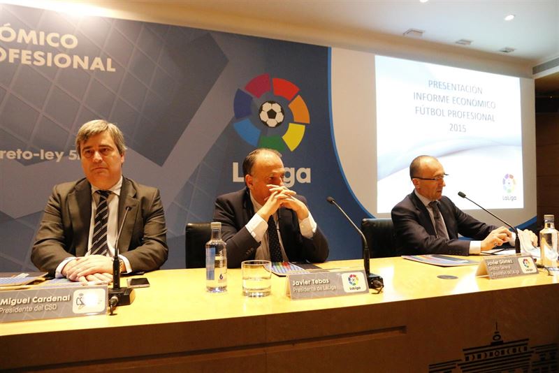 Los clubes profesionales españoles estarán «totalmente saneados» en un plazo de tres años, en junio de 2019, y la Liga española será «la más robusta» de Europa, con una deuda con la Agencia Tributaria y las Haciendas Forales cercana a los 200 millones de euros y que será inferior a los 50 en 2020.