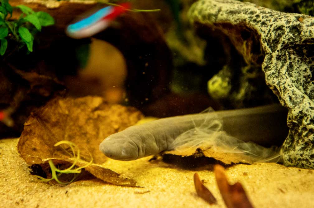 Las cecilias acuáticas, de la familia de los tiflonéctidos, pueden compartir el acuario con casi todos los peces y se sienten más cómodas en una pecera de 26 o 27 grados centígrados.