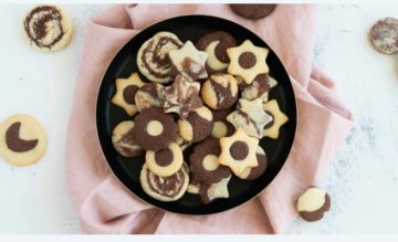 Un clásico de la Navidad son las galletas blancas y negras. La masa es muy simple. Lo llamativo es la combinación de ambos colores y las formas que se pueden lograr, ya sea en un diseño marmolado, a modo de ajedrez o en forma de caracoles. Para que salga bien, los especialistas recomiendan untar la masa de abajo con clara de huevo, antes de colocarle el otro color encima, para que las dos partes no se despeguen con el tiempo.