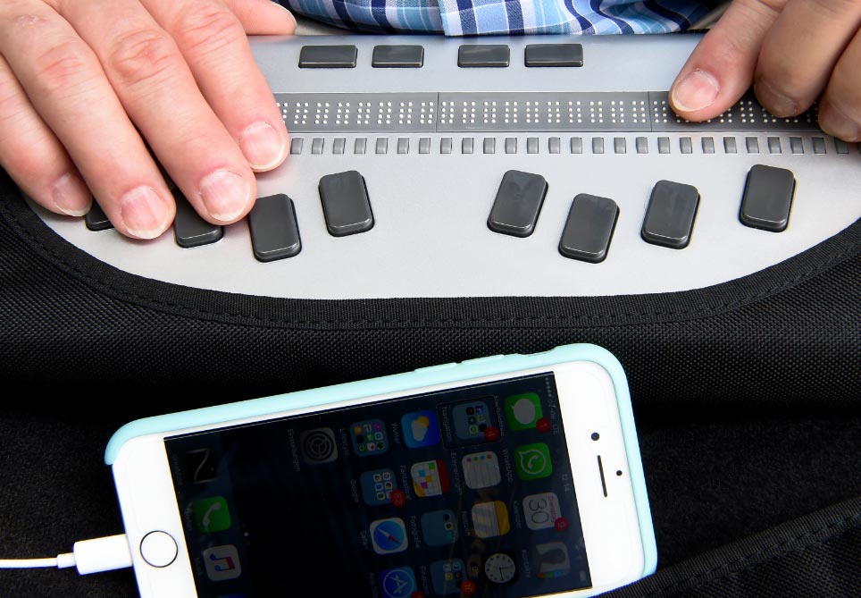 Este dispositivo, que muestra caracteres convencionales en Braille, puede utilizarse para leer libros electrónicos o noticias, por ejemplo.