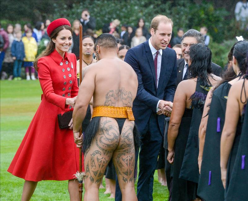 Antes de abordar una limusina que los llevó a la Casa de Gobierno en Wellington, Guillermo, Catalina y su bebé estuvieron apenas dos minutos en la pista de aterrizaje, arropados por la algarabía de sus simpatizantes y un tiempo marcado por el viento y la lluvia.
