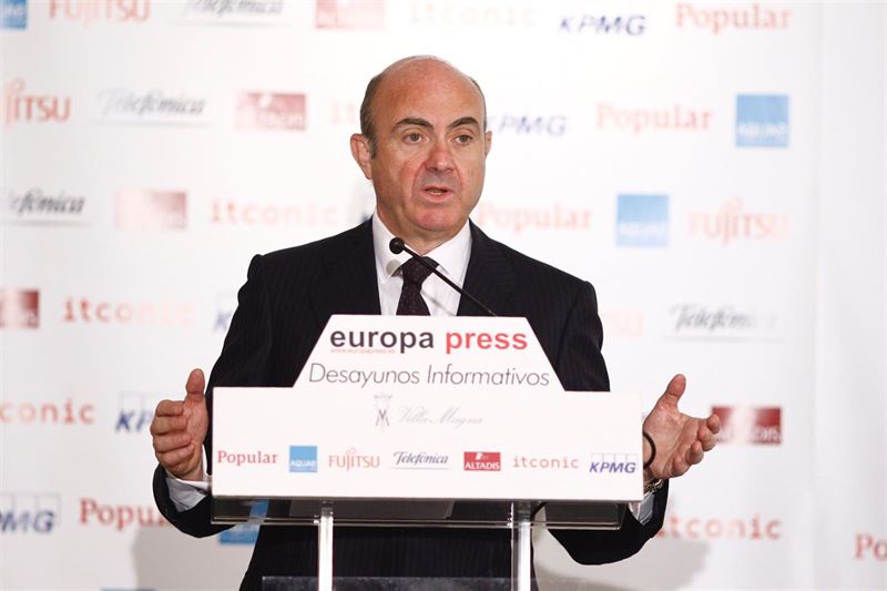 El ministro de Economía en funciones, Luis de Guindos, ha descartado que los bancos acaben pagando por las hipotecas, a través de una reducción del capital a amortizar, ante la entrada en terreno negativo del Euríbor, ya que ha considerado que existe «margen» para compensar los diferenciales aplicados.