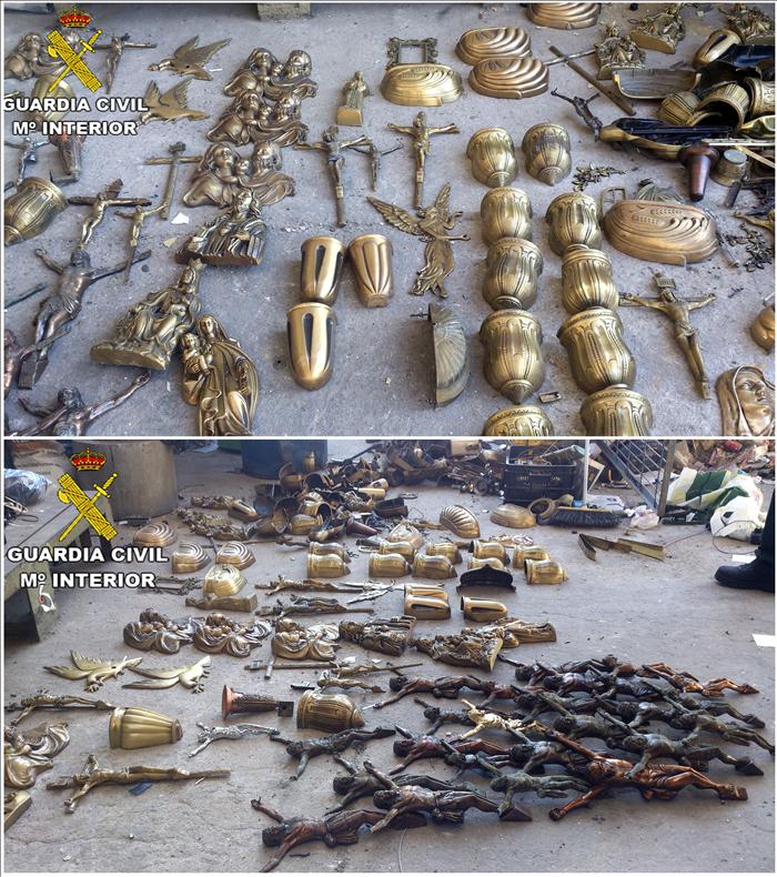 Se les acusa de delitos de apropiación indebida y de la receptación de imágenes, crucifijos, féretros de zinc y otros objetos funerarios, informa la Guardia Civil.